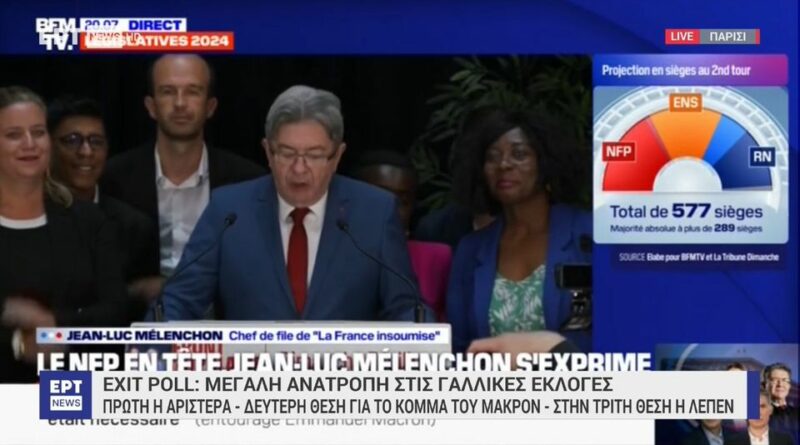 Γαλλικές εκλογές -Ανατροπή: Πρωτιά Μελανσόν, δεύτερος ο Μακρόν, τρίτη η Λεπέν