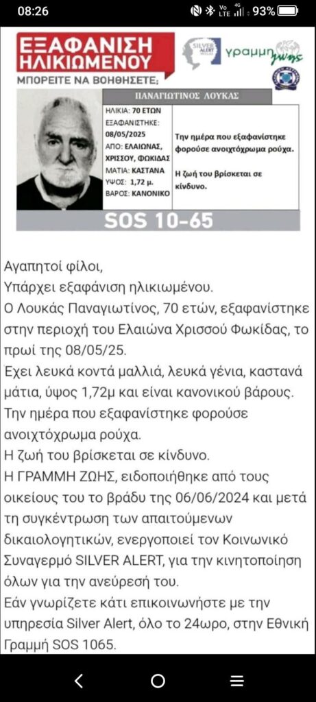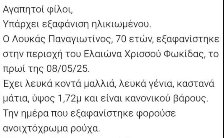 ΕπικαιρότηταΚοινωνικοί ΦορείςΤοπικά Εξαφάνιση ηλικιωμένου 13 Μαΐου, 202513 Μαΐου, 2025 econtent 267 Views