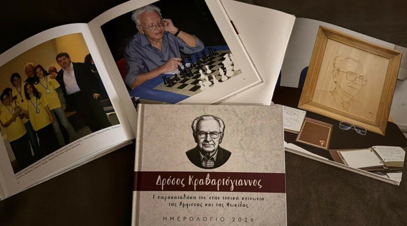 Και καταλήγει: «Το ημερολόγιο του Δήμου Δελφών για το 2026, που κρατάμε στα χέρια μας, επιτελεί ένα μέρος των στόχων που τέθηκαν. Είναι αφιερωμένο στον Δρόσο Κραβαρτόγιαννο, απαντώντας και στην ανάγκη των ημερών μας, να δημιουργηθούν οι συνθήκες ώστε κι άλλοι να ακολουθήσουν το δρόμο που εκείνος χάραξε».