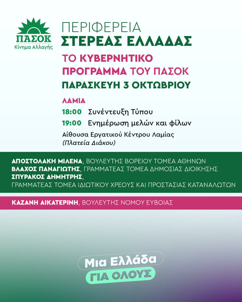 Πολιτικά – ΦωκίδαΤοπικά Λαμία Παρασκευή 3/10/25, Παρουσίαση – Τεκμηρίωση Κυβερνητικού Προγράμματος ΠΑΣΟΚ -Κινήματος Αλλαγής 2 Οκτωβρίου, 20252 Οκτωβρίου, 2025 econtent 81 Views