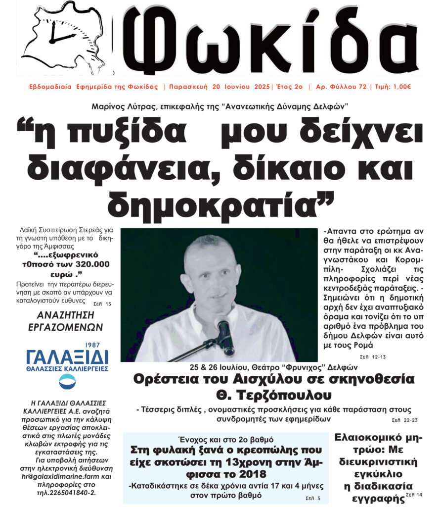 ΕπικαιρότηταΚοινωνικοί ΦορείςΤοπικά Το πρωτοσέλιδο της ΦΩΚΙΔΑΣ που κυκλοφορεί 21 Ιουνίου, 202521 Ιουνίου, 2025 econtent 445 Views