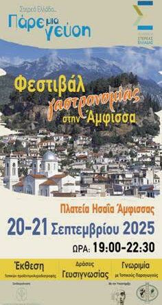 Φεστιβάλ Γαστρονομίας «ΣΤΕΡΕΑ ΕΛΛΑΔΑ…ΠΑΡΕ ΜΙΑ ΓΕΥΣΗ» 20 & 21 Σεπτεμβρίου 2025 στην πλατεία Ησαΐα στην Άμφισσα