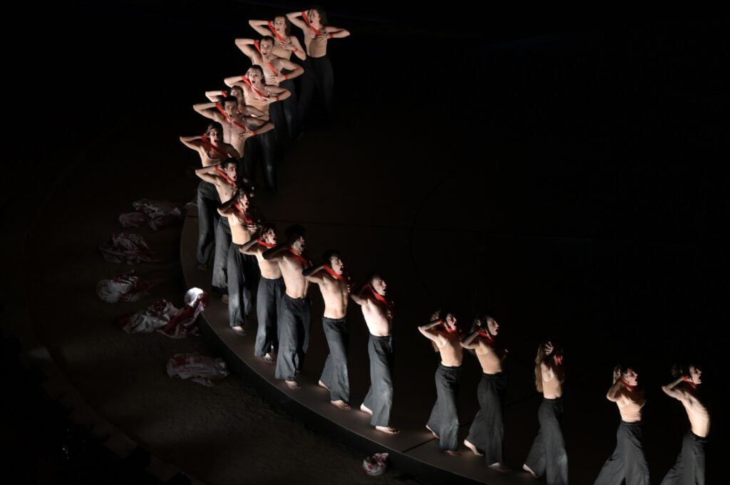 Η εμβληματική Ορέστεια του Αισχύλου σε σκηνοθεσία Θεόδωρου Τερζόπουλου, στην πρώτη συνεργασία του διεθνώς καταξιωμένου Έλληνα σκηνοθέτη και δασκάλου με το Εθνικό Θέατρο, αποτελεί μία από τις σπουδαιότερες στιγμές στην πρόσφατη ιστορία του ελληνικού θεάτρου. Μετά τη θριαμβευτική της πορεία, η παράσταση ταξιδεύει στο Θέατρο ΦΡΥΝΙΧΟΣ του Ευρωπαϊκού Πολιτιστικού Κέντρου Δελφών, στις 25 & 26 Ιουλίου, καθώς και σε επιλεγμένους ακόμη σταθμούς στην Ελλάδα και το εξωτερικό, ενώ στις 22 & 23 Αυγούστου ολοκληρώνει τον φετινό επιδαύριο κύκλο του Φεστιβάλ στο Αρχαίο Θέατρο Επιδαύρου.