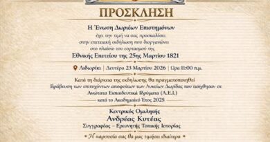 ΠερισσότεραΤην επετειακή ετήσια θεσμική εκδήλωση βράβευσης επιτυχόντων αποφοίτων των Λυκείων της Δωρίδας στα Πανεπιστήμια πραγματοποιεί τη Δευτέρα 23 Μαρτίου 2026,